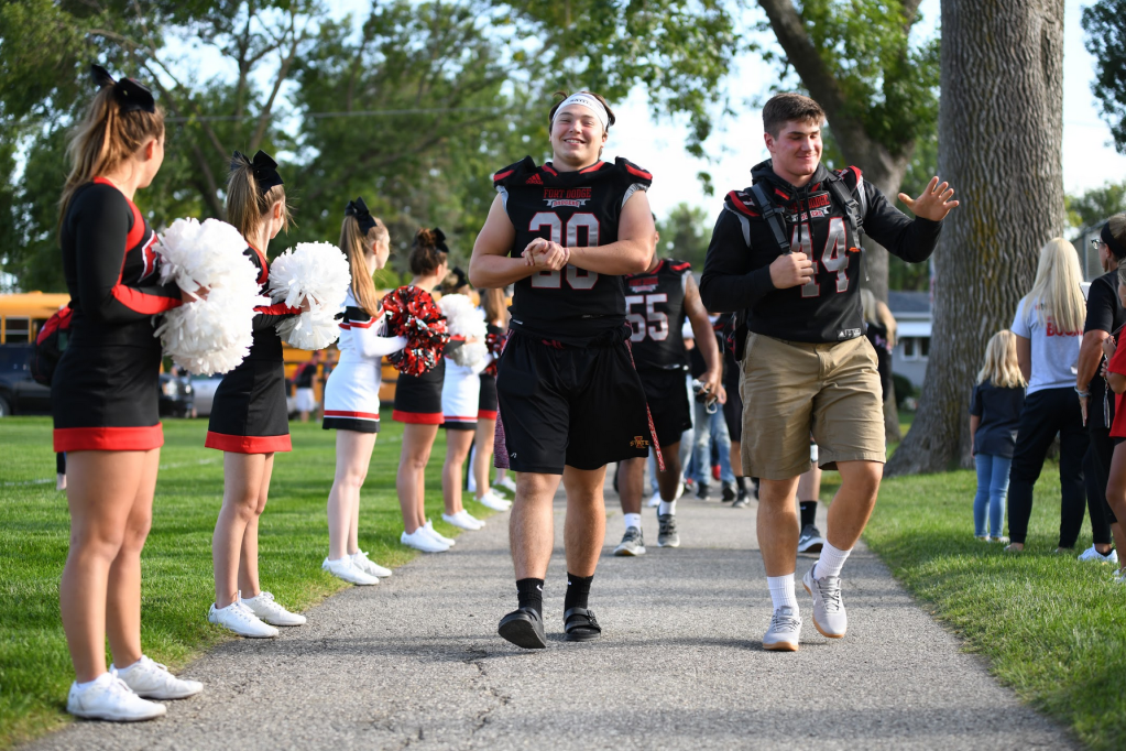 Before the Homecoming game against Indianola, Fort Dodge unveiled new red alternative jerseys. The Dodgers have worn red jerseys in the past, but they had become tattered and torn. The new jerseys brought excitement and pride to the football players, and the Dodgers went on to win a thrilling overtime game (28-21) against a quality 4A-playoff opponent.